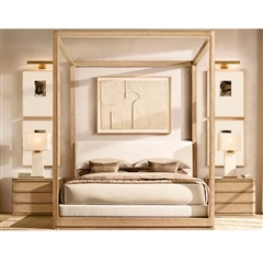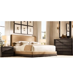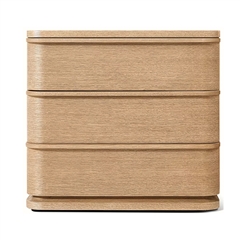 Defined by individually applied reeds of wire-brushed solid American white oak, Mulholland is the creation of celebrated design team Thomas Bina and Ronald Sasson. The collection features radius corners that curve around the side for an uninterrupted, fluid silhouette. Crafted of Emperador marble, the top is replete with rich veining and striking color contrasts that make each piece unique.