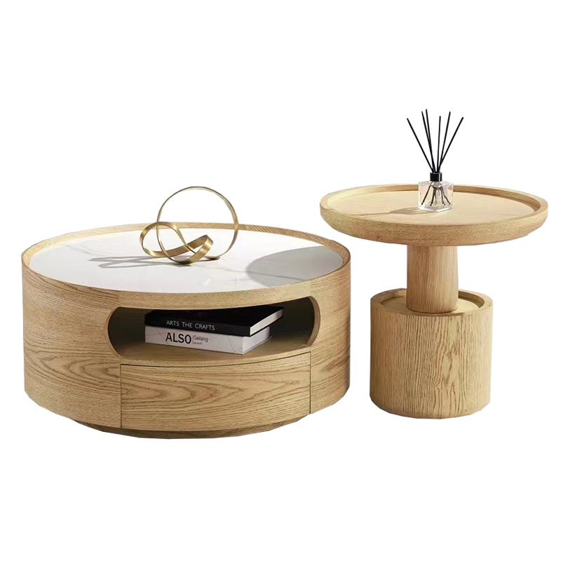 Round Coffee Table Set Solid Wood Coffee Table Sintered Stone Coffee Table Storage Coffee Table